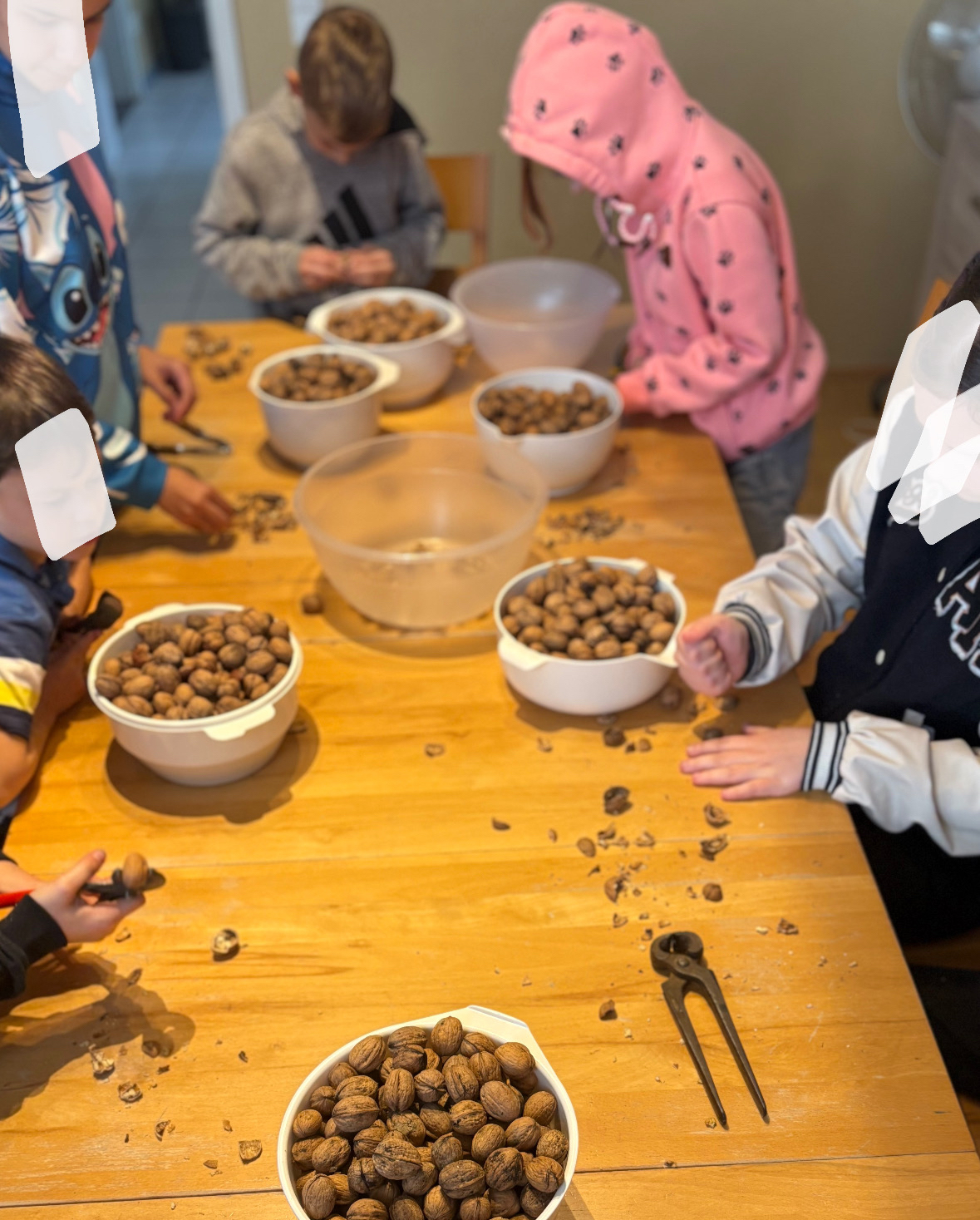 Nicht so in der WG Regenbogen. Neun Kinder und Jugendliche sammelten fleißig Walnüsse. Diese wurden sorgfältig getrocknet und dann war es endlich soweit. Gemeinsam wurden die gesammelten Nüsse in der Küche karamellisiert. Dabei entstanden nicht nur leckere Ergebnisse, sondern auch viele schöne Momente des Miteinanders. Die Küche war im Anschluss kein Schlachtfeld und es hat nichts geklebt.