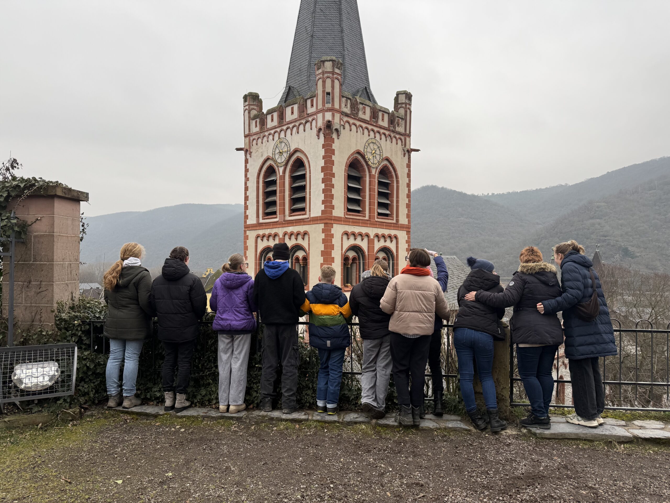 Nach dem Essen unternahmen wir eine Wanderung durch Bacharach, in die Weinberge und zur Burg Stahleck. Zum Aufwärmen gab es noch einen Kakao und ein paar Knabbereien und zwei Kisten Saft für unsere Gruppe.