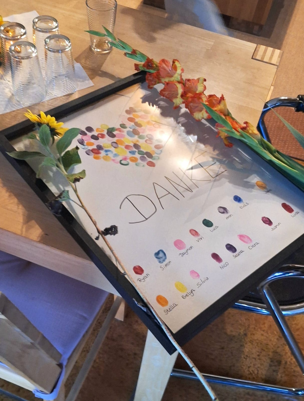 Die Kinder, Jugendlichen und die Mitarbeitenden der WG Villa Sonnenschein feierten Ende September ein kleines Fest und bedankten sich bei den Spendern mit einem Plakat und einem wunderschönen Gedicht: